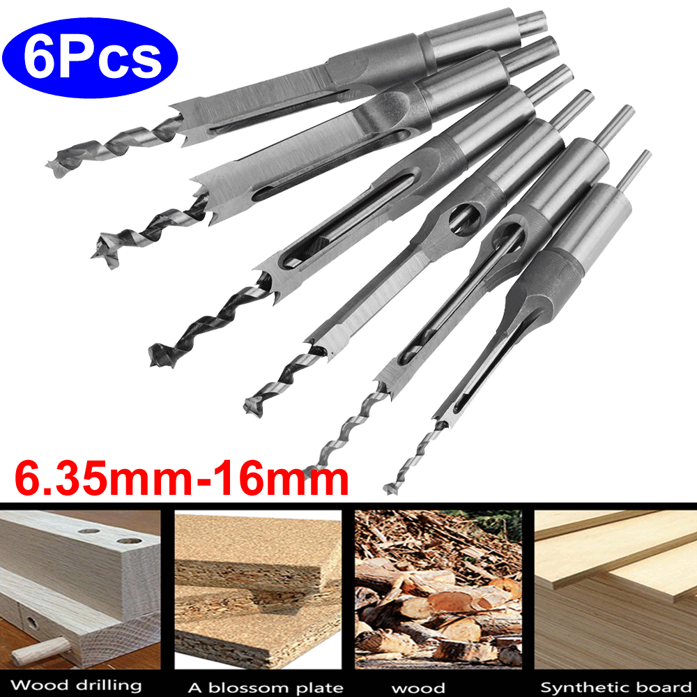 6Pcs Square-hole Saw Auger Drill Bit Mortising Chisel Woodworking Tool US