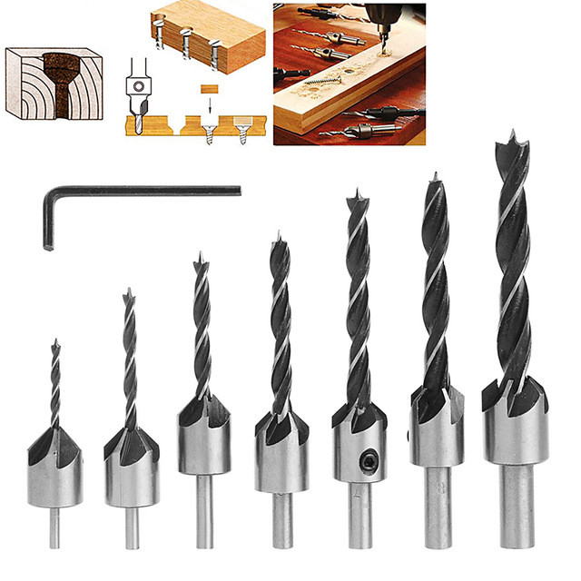7 pcs Drill Bit Wood 5 Flute HSS Countersink Set 3 4 5 6 7 8 10mm Carpentry Tool
