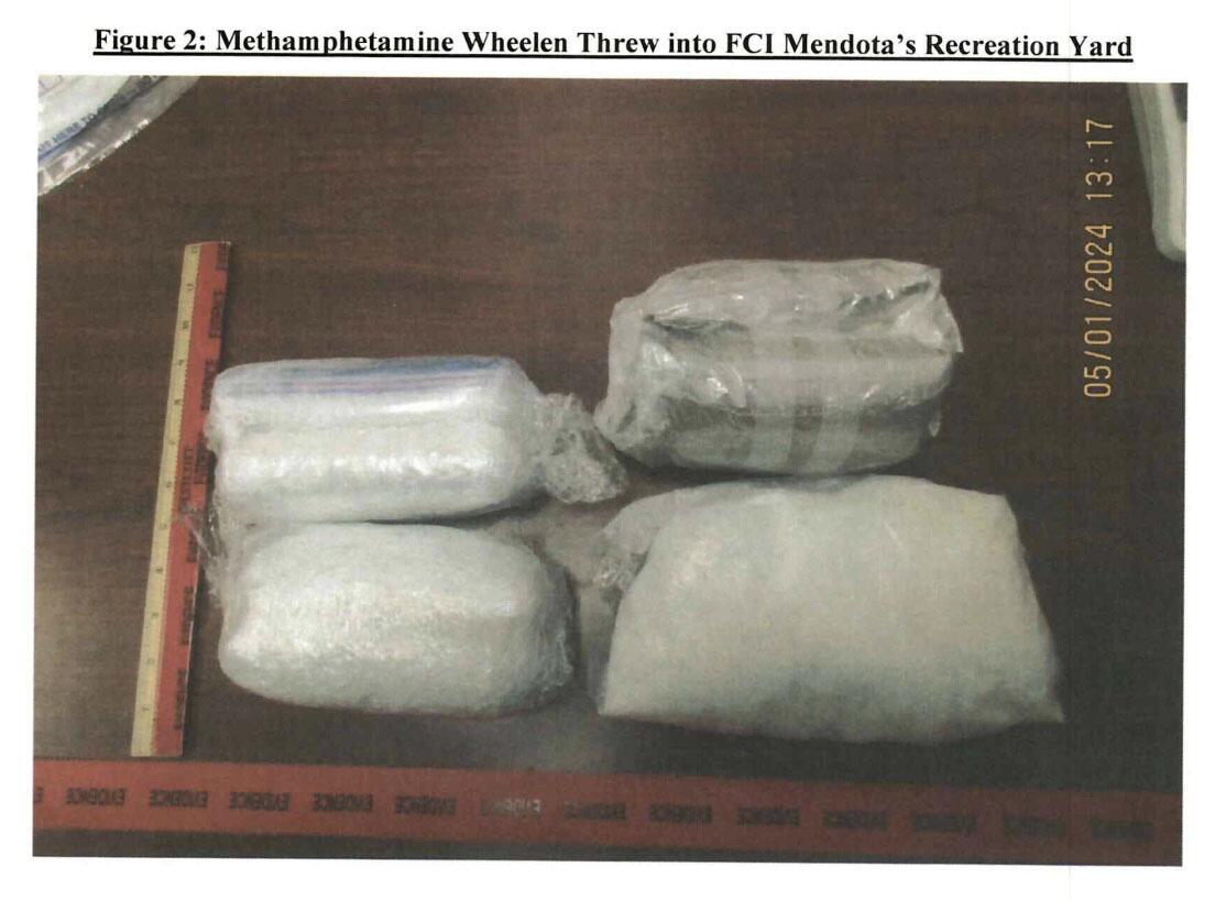 Mendota inmates who were near the packages were ordered to immediately leave the yard and searched, prosecutors said, and no contraband was recovered.