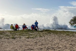 Surf of 8 to 12 feet is expected. Strong breaking waves and strong currents will make swimming dangerous.