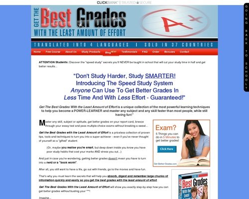 Get The Best Grades With the Least Amount of Effort contains a step-by-step formula to help you get better grades without having to study harder and without reading more books or doing extra credit projects to balance out your test scores.