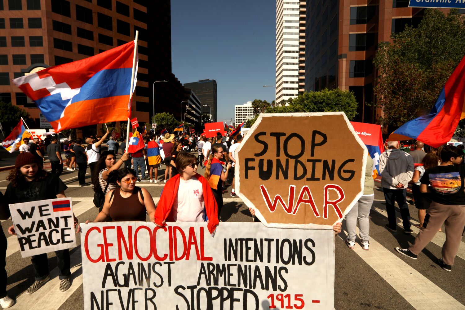 But demonstrators outside the Wilshire Boulevard consulate on Saturday say the fighting started in 2020 when Azerbaijan, with the help of Turkey, launched a war to remove Armenians living in the disputed border region of Nagorno-Karabakh, referred to as the Republic of Artsakh.